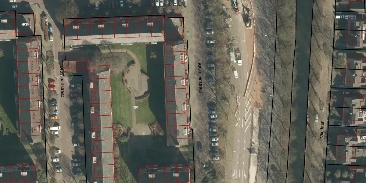 Het perceel waarop Kasteleinstraat 13 staat heeft een oppervlakte van 6211 m². Dit is een zeer groot perceel. De perceeloppervlakte wordt geregistreerd door het Kadaster. Gedetailleerde informatie over de maten van dit perceel kunt u vinden in het rapport Kadastrale kaart met maatvoering van Kasteleinstraat 13.