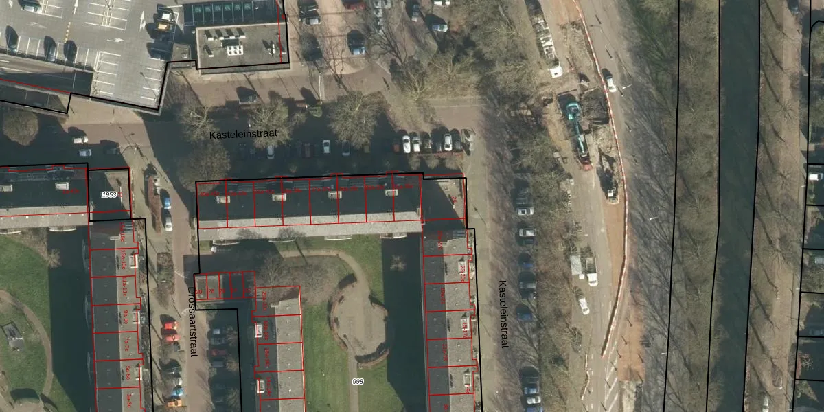 Het perceel waarop Kasteleinstraat 31-c staat heeft een oppervlakte van 6211 m². Dit is een zeer groot perceel. De perceeloppervlakte wordt geregistreerd door het Kadaster. Gedetailleerde informatie over de maten van dit perceel kunt u vinden in het rapport Kadastrale kaart met maatvoering van Kasteleinstraat 31-c.