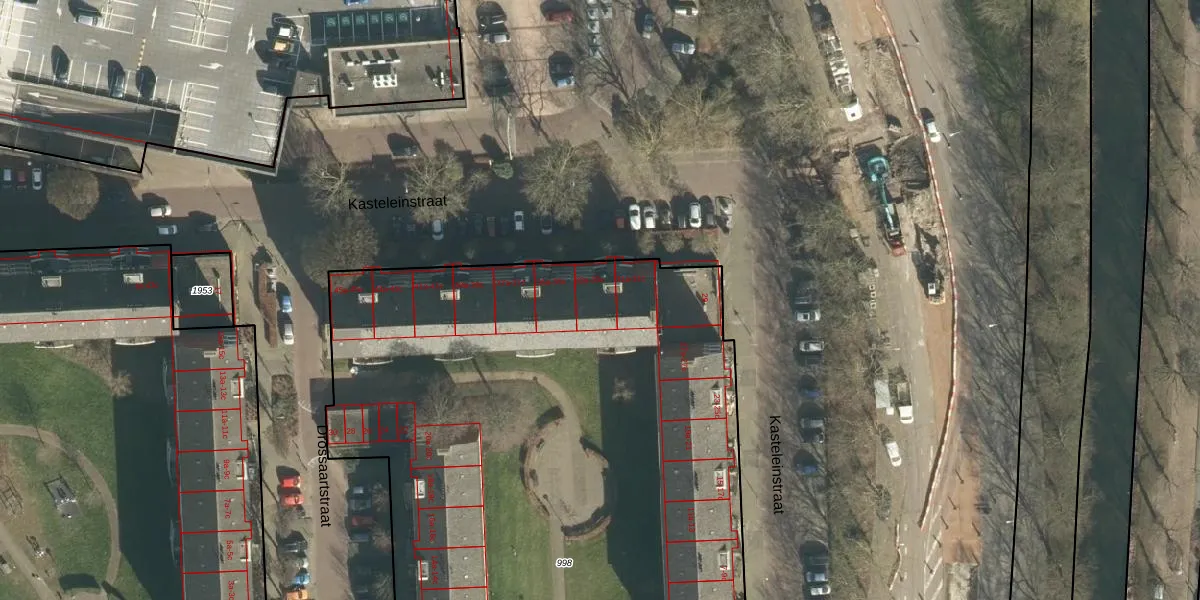 Het perceel waarop Kasteleinstraat 33-b staat heeft een oppervlakte van 6211 m². Dit is een zeer groot perceel. De perceeloppervlakte wordt geregistreerd door het Kadaster. Gedetailleerde informatie over de maten van dit perceel kunt u vinden in het rapport Kadastrale kaart met maatvoering van Kasteleinstraat 33-b.