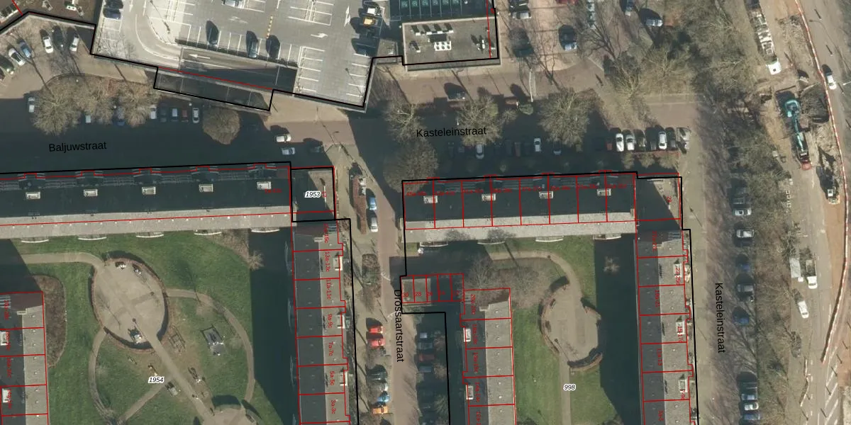 Het perceel waarop Kasteleinstraat 45-c staat heeft een oppervlakte van 6211 m². Dit is een zeer groot perceel. De perceeloppervlakte wordt geregistreerd door het Kadaster. Gedetailleerde informatie over de maten van dit perceel kunt u vinden in het rapport Kadastrale kaart met maatvoering van Kasteleinstraat 45-c.