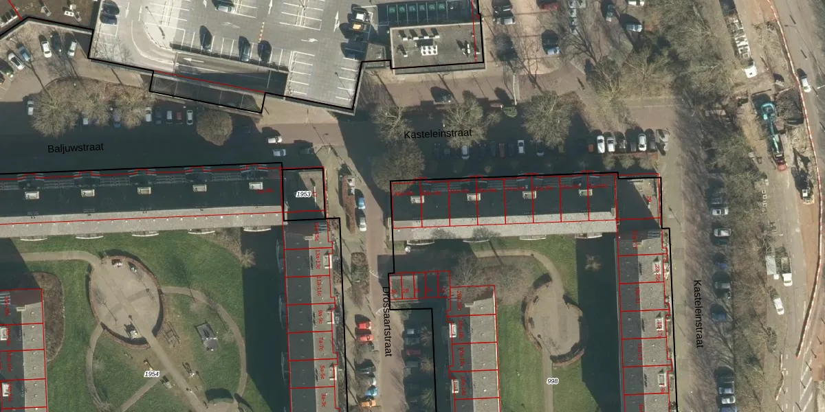 Het perceel waarop Kasteleinstraat 45-b staat heeft een oppervlakte van 6211 m². Dit is een zeer groot perceel. De perceeloppervlakte wordt geregistreerd door het Kadaster. Gedetailleerde informatie over de maten van dit perceel kunt u vinden in het rapport Kadastrale kaart met maatvoering van Kasteleinstraat 45-b.