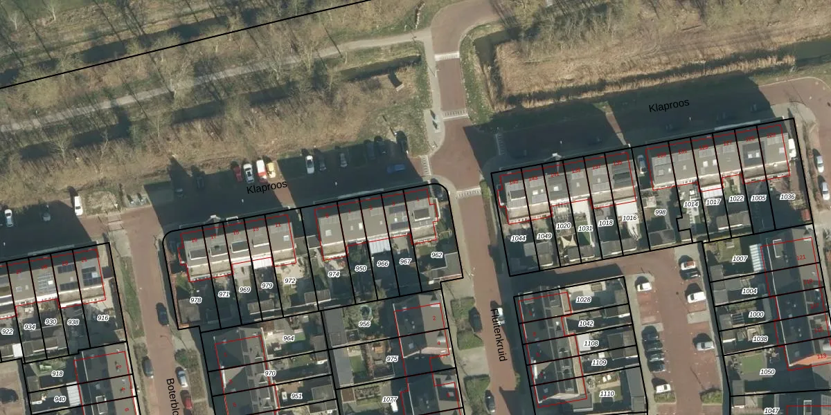 Klaproos 1 is gelegen op kadastraal perceel GRC00H962. Deze kadastrale aanduiding is uniek en wordt gebruikt door het Kadaster om eigendomsrechten en andere zakelijke rechten vast te leggen. Het perceel maakt onderdeel uit van de kadastrale gemeente Gorinchem.