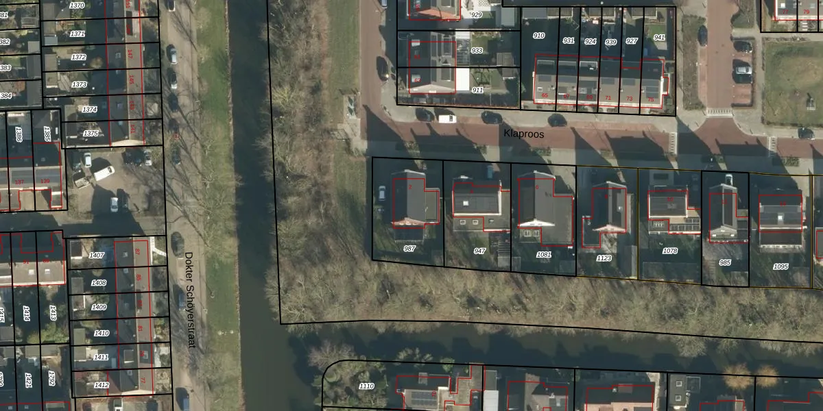 Gebruik de zoekbalk of klik op een perceel voor informatie over de adressen binnen dit perceel.