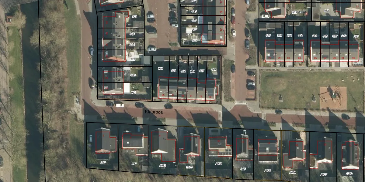Gebruik de zoekbalk of klik op een perceel voor informatie over de adressen binnen dit perceel.
