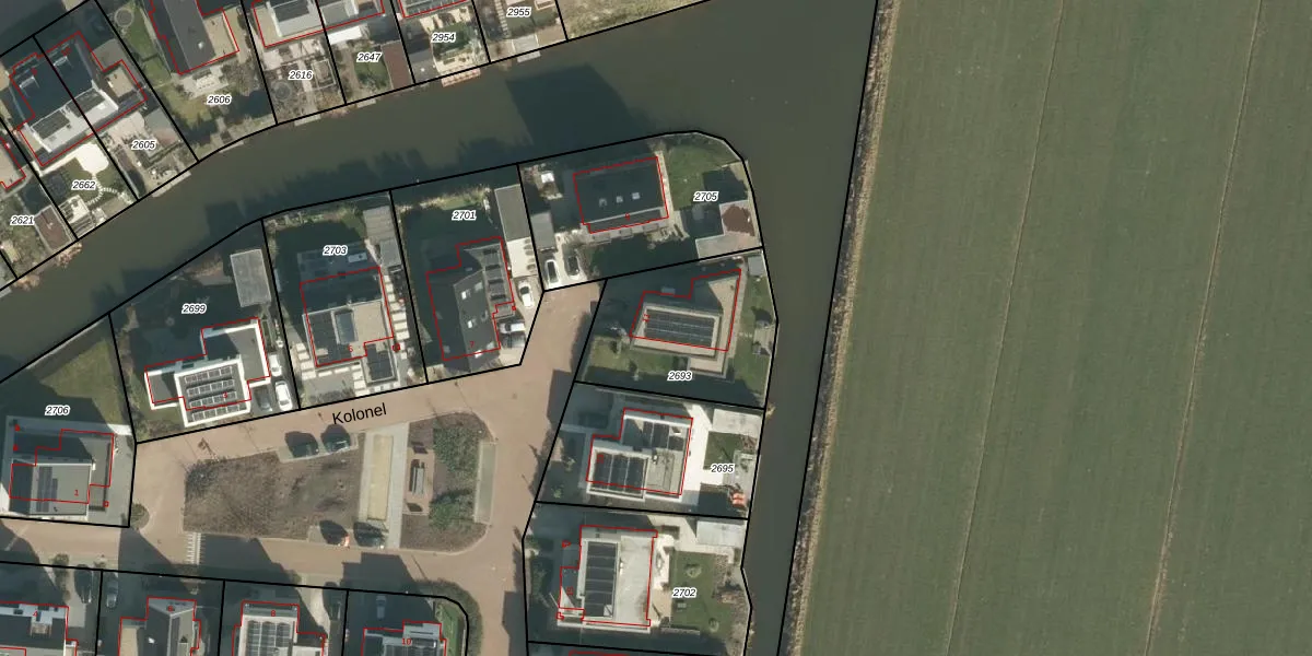Het perceel waarop Kolonel 11 staat heeft een oppervlakte van 561 m². Dit is een groot perceel. De perceeloppervlakte wordt geregistreerd door het Kadaster. Gedetailleerde informatie over de maten van dit perceel kunt u vinden in het rapport Kadastrale kaart met maatvoering van Kolonel 11.