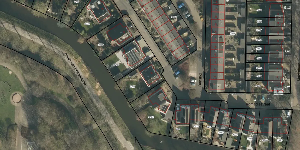 Komediestraat 19 is gelegen op kadastraal perceel GRC00F3267. Deze kadastrale aanduiding is uniek en wordt gebruikt door het Kadaster om eigendomsrechten en andere zakelijke rechten vast te leggen. Het perceel maakt onderdeel uit van de kadastrale gemeente Gorinchem.