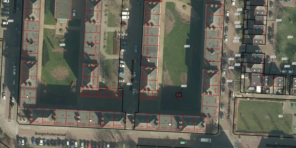 Koningstabelstraat 12-b is gelegen op kadastraal perceel GRC00E1208. Deze kadastrale aanduiding is uniek en wordt gebruikt door het Kadaster om eigendomsrechten en andere zakelijke rechten vast te leggen. Het perceel maakt onderdeel uit van de kadastrale gemeente Gorinchem.