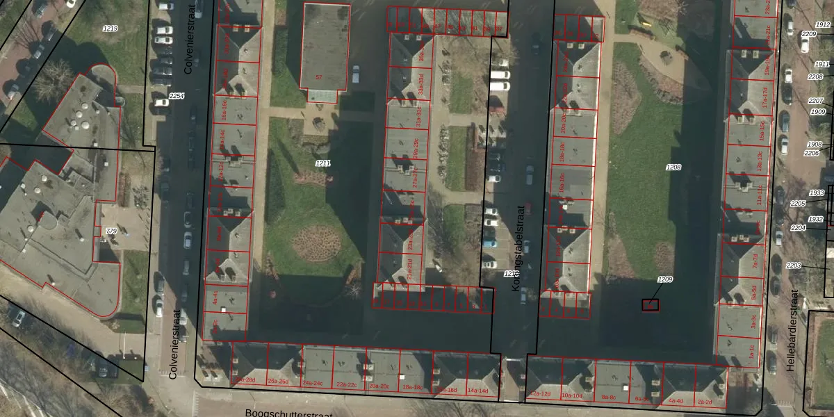 Het perceel waarop Koningstabelstraat 25-a staat heeft een oppervlakte van 7925 m². Dit is een zeer groot perceel. De perceeloppervlakte wordt geregistreerd door het Kadaster. Gedetailleerde informatie over de maten van dit perceel kunt u vinden in het rapport Kadastrale kaart met maatvoering van Koningstabelstraat 25-a.