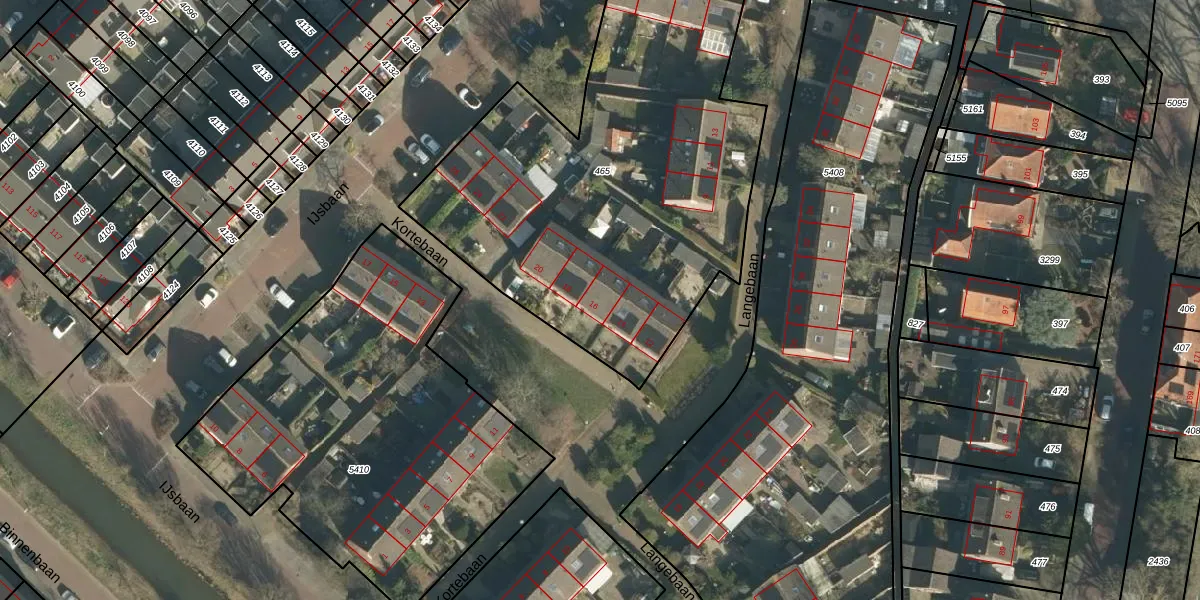 Het perceel waarop Kortebaan 16 staat heeft een oppervlakte van 2446 m². Dit is een zeer groot perceel. De perceeloppervlakte wordt geregistreerd door het Kadaster. Gedetailleerde informatie over de maten van dit perceel kunt u vinden in het rapport Kadastrale kaart met maatvoering van Kortebaan 16.