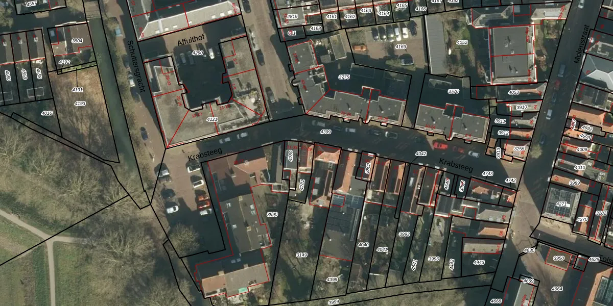 Het perceel waarop Krabsteeg 27 staat heeft een oppervlakte van 95 m². Dit is een klein perceel. De perceeloppervlakte wordt geregistreerd door het Kadaster. Gedetailleerde informatie over de maten van dit perceel kunt u vinden in het rapport Kadastrale kaart met maatvoering van Krabsteeg 27.
