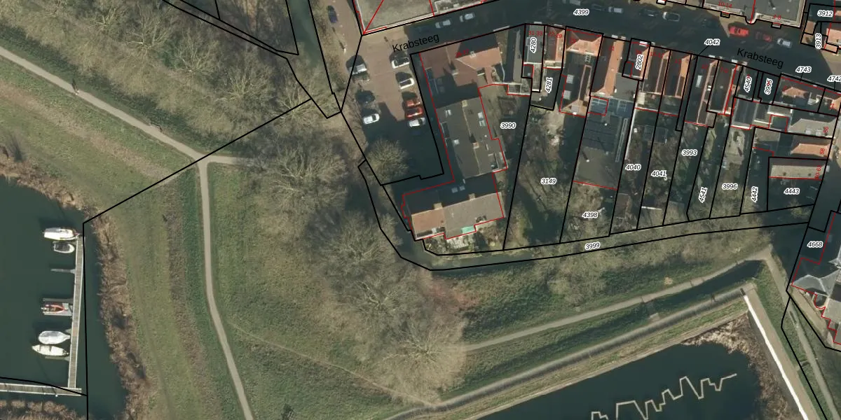 Krabsteeg 53 is gelegen op kadastraal perceel GRC00D3990. Deze kadastrale aanduiding is uniek en wordt gebruikt door het Kadaster om eigendomsrechten en andere zakelijke rechten vast te leggen. Het perceel maakt onderdeel uit van de kadastrale gemeente Gorinchem.