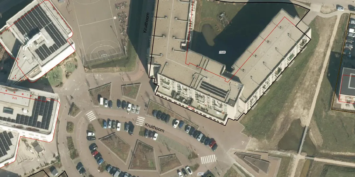 Het perceel waarop Kruithoorn 14 staat heeft een oppervlakte van 4750 m². Dit is een zeer groot perceel. De perceeloppervlakte wordt geregistreerd door het Kadaster. Gedetailleerde informatie over de maten van dit perceel kunt u vinden in het rapport Kadastrale kaart met maatvoering van Kruithoorn 14.