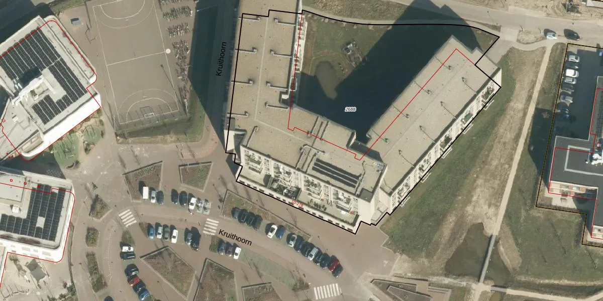 Het perceel waarop Kruithoorn 30 staat heeft een oppervlakte van 4750 m². Dit is een zeer groot perceel. De perceeloppervlakte wordt geregistreerd door het Kadaster. Gedetailleerde informatie over de maten van dit perceel kunt u vinden in het rapport Kadastrale kaart met maatvoering van Kruithoorn 30.