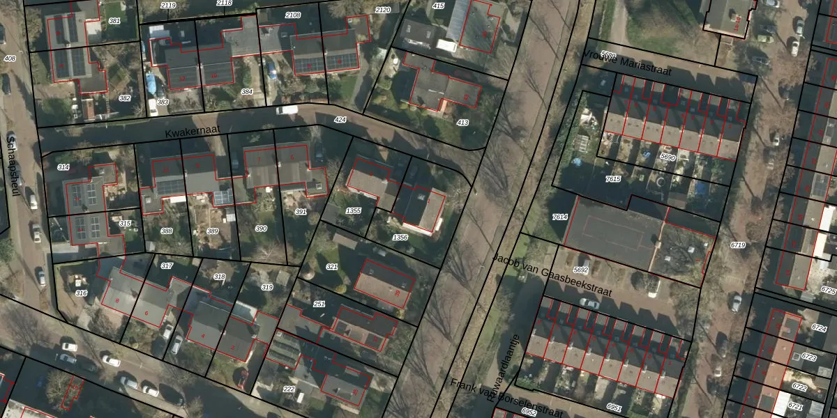 Gebruik de zoekbalk of klik op een perceel voor informatie over de adressen binnen dit perceel.