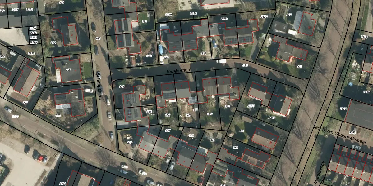 Het perceel waarop Kwakernaat 9 staat heeft een oppervlakte van 330 m². Dit is een groot perceel. De perceeloppervlakte wordt geregistreerd door het Kadaster. Gedetailleerde informatie over de maten van dit perceel kunt u vinden in het rapport Kadastrale kaart met maatvoering van Kwakernaat 9.