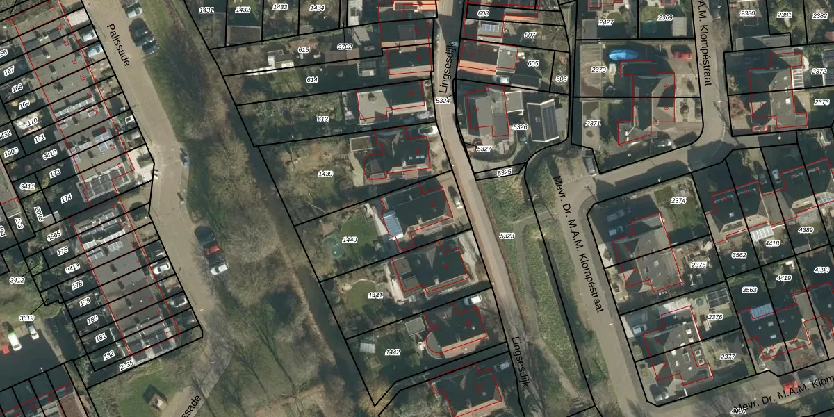 Het perceel waarop Lingsesdijk 32 staat heeft een oppervlakte van 585 m². Dit is een groot perceel. De perceeloppervlakte wordt geregistreerd door het Kadaster. Gedetailleerde informatie over de maten van dit perceel kunt u vinden in het rapport Kadastrale kaart met maatvoering van Lingsesdijk 32.