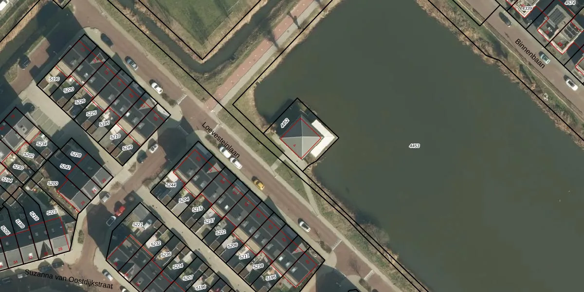 Gebruik de zoekbalk of klik op een perceel voor informatie over de adressen binnen dit perceel.