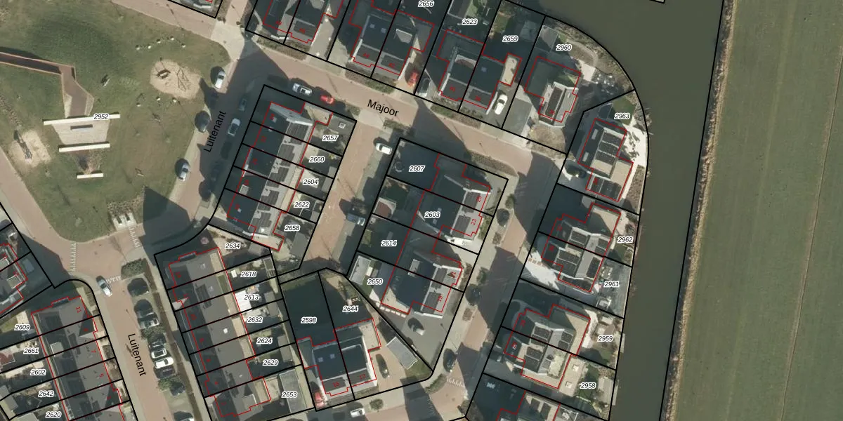 Het perceel waarop Majoor 23 staat heeft een oppervlakte van 264 m². Dit is een middelgroot perceel. De perceeloppervlakte wordt geregistreerd door het Kadaster. Gedetailleerde informatie over de maten van dit perceel kunt u vinden in het rapport Kadastrale kaart met maatvoering van Majoor 23.