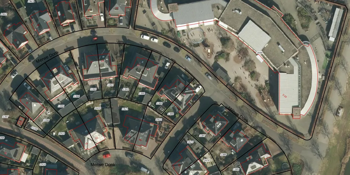 Het perceel waarop Merwe Donk 19 staat heeft een oppervlakte van 351 m². Dit is een groot perceel. De perceeloppervlakte wordt geregistreerd door het Kadaster. Gedetailleerde informatie over de maten van dit perceel kunt u vinden in het rapport Kadastrale kaart met maatvoering van Merwe Donk 19.