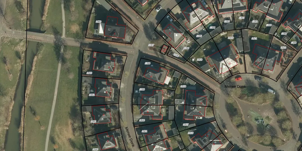 Het perceel waarop Merwe Donk 35 staat heeft een oppervlakte van 432 m². Dit is een groot perceel. De perceeloppervlakte wordt geregistreerd door het Kadaster. Gedetailleerde informatie over de maten van dit perceel kunt u vinden in het rapport Kadastrale kaart met maatvoering van Merwe Donk 35.