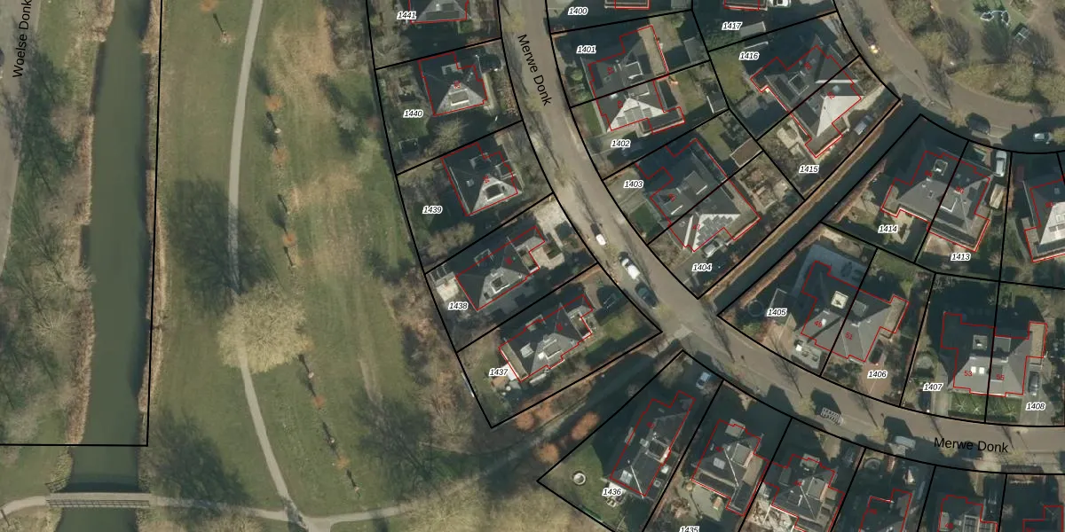 Het perceel waarop Merwe Donk 36 staat heeft een oppervlakte van 469 m². Dit is een groot perceel. De perceeloppervlakte wordt geregistreerd door het Kadaster. Gedetailleerde informatie over de maten van dit perceel kunt u vinden in het rapport Kadastrale kaart met maatvoering van Merwe Donk 36.