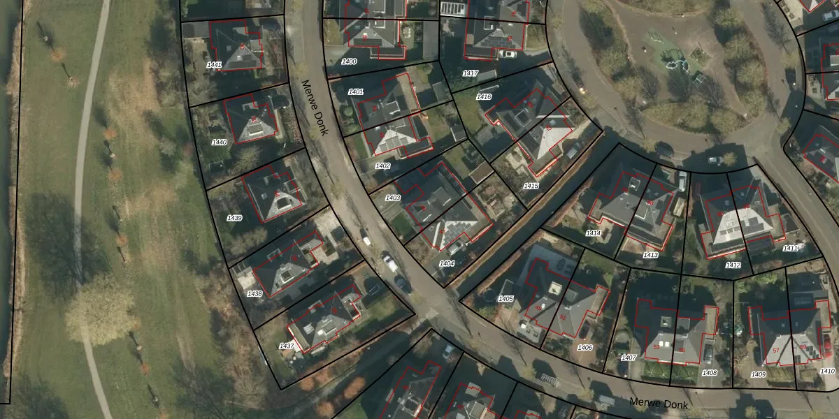 Merwe Donk 45 is gelegen op kadastraal perceel GRC00P1403. Deze kadastrale aanduiding is uniek en wordt gebruikt door het Kadaster om eigendomsrechten en andere zakelijke rechten vast te leggen. Het perceel maakt onderdeel uit van de kadastrale gemeente Gorinchem.