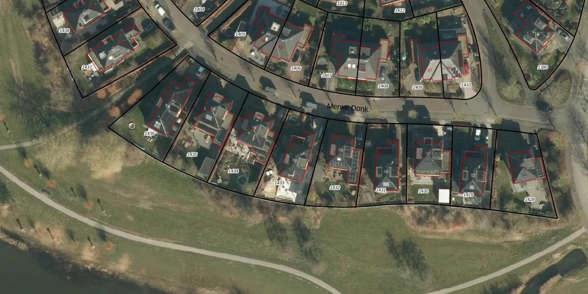 Merwe Donk 46 is gelegen op kadastraal perceel GRC00P1433. Deze kadastrale aanduiding is uniek en wordt gebruikt door het Kadaster om eigendomsrechten en andere zakelijke rechten vast te leggen. Het perceel maakt onderdeel uit van de kadastrale gemeente Gorinchem.