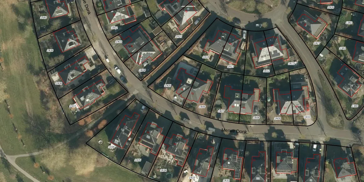 Het perceel waarop Merwe Donk 49 staat heeft een oppervlakte van 442 m². Dit is een groot perceel. De perceeloppervlakte wordt geregistreerd door het Kadaster. Gedetailleerde informatie over de maten van dit perceel kunt u vinden in het rapport Kadastrale kaart met maatvoering van Merwe Donk 49.