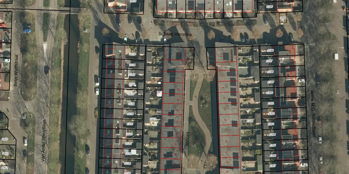 Het perceel waarop Minoes 10 staat heeft een oppervlakte van 2014 m². Dit is een zeer groot perceel. De perceeloppervlakte wordt geregistreerd door het Kadaster. Gedetailleerde informatie over de maten van dit perceel kunt u vinden in het rapport Kadastrale kaart met maatvoering van Minoes 10.