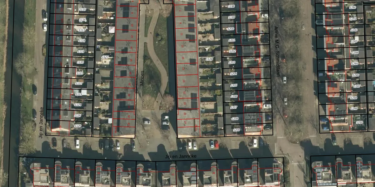 Het perceel waarop Minoes 21 staat heeft een oppervlakte van 2183 m². Dit is een zeer groot perceel. De perceeloppervlakte wordt geregistreerd door het Kadaster. Gedetailleerde informatie over de maten van dit perceel kunt u vinden in het rapport Kadastrale kaart met maatvoering van Minoes 21.