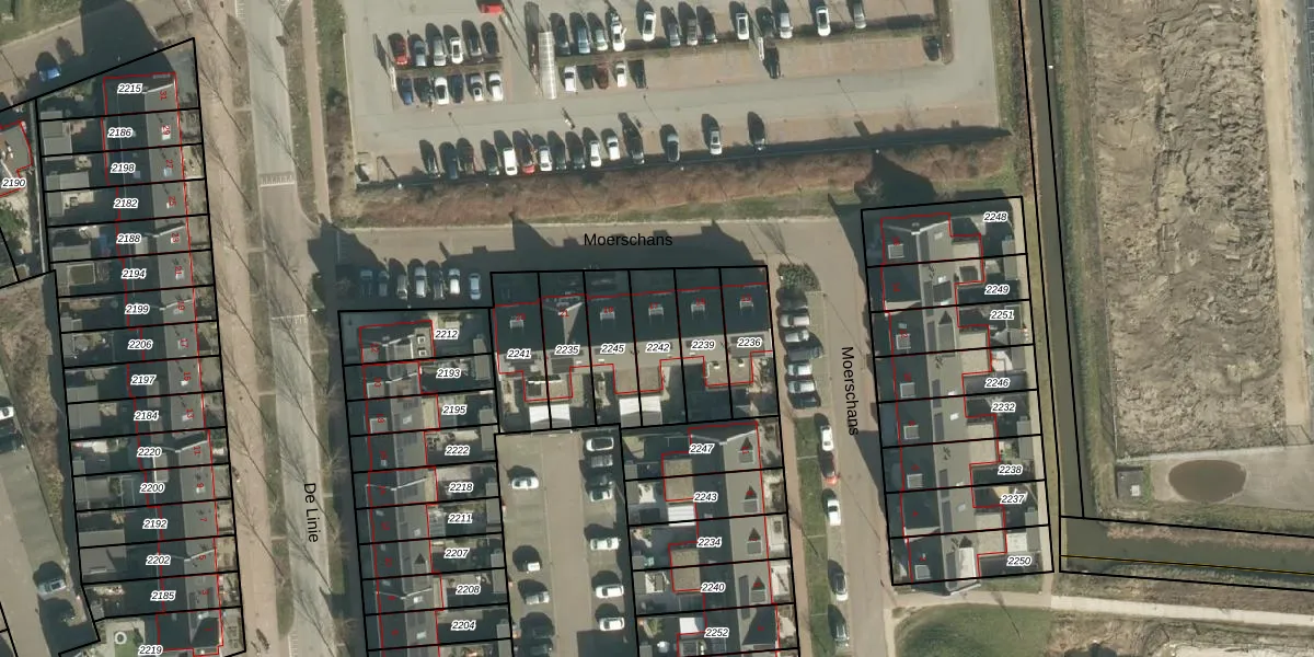 Het perceel waarop Moerschans 17 staat heeft een oppervlakte van 165 m². Dit is een middelgroot perceel. De perceeloppervlakte wordt geregistreerd door het Kadaster. Gedetailleerde informatie over de maten van dit perceel kunt u vinden in het rapport Kadastrale kaart met maatvoering van Moerschans 17.