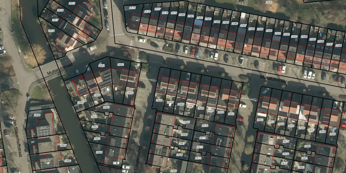 Het perceel waarop Multatulistraat 16 staat heeft een oppervlakte van 153 m². Dit is een middelgroot perceel. De perceeloppervlakte wordt geregistreerd door het Kadaster. Gedetailleerde informatie over de maten van dit perceel kunt u vinden in het rapport Kadastrale kaart met maatvoering van Multatulistraat 16.