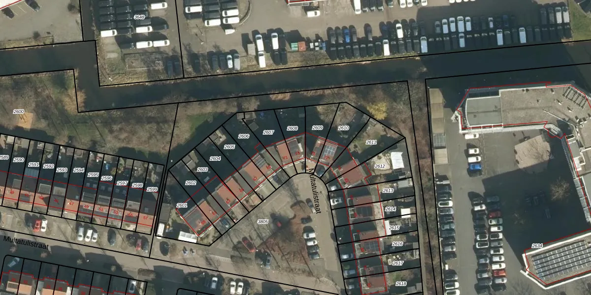 Multatulistraat 73 is gelegen op kadastraal perceel GRC00F2608. Deze kadastrale aanduiding is uniek en wordt gebruikt door het Kadaster om eigendomsrechten en andere zakelijke rechten vast te leggen. Het perceel maakt onderdeel uit van de kadastrale gemeente Gorinchem.
