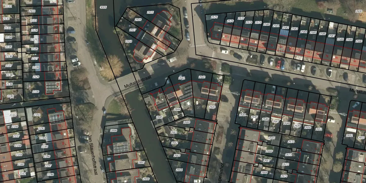 Het perceel waarop Multatulistraat 8 staat heeft een oppervlakte van 215 m². Dit is een middelgroot perceel. De perceeloppervlakte wordt geregistreerd door het Kadaster. Gedetailleerde informatie over de maten van dit perceel kunt u vinden in het rapport Kadastrale kaart met maatvoering van Multatulistraat 8.