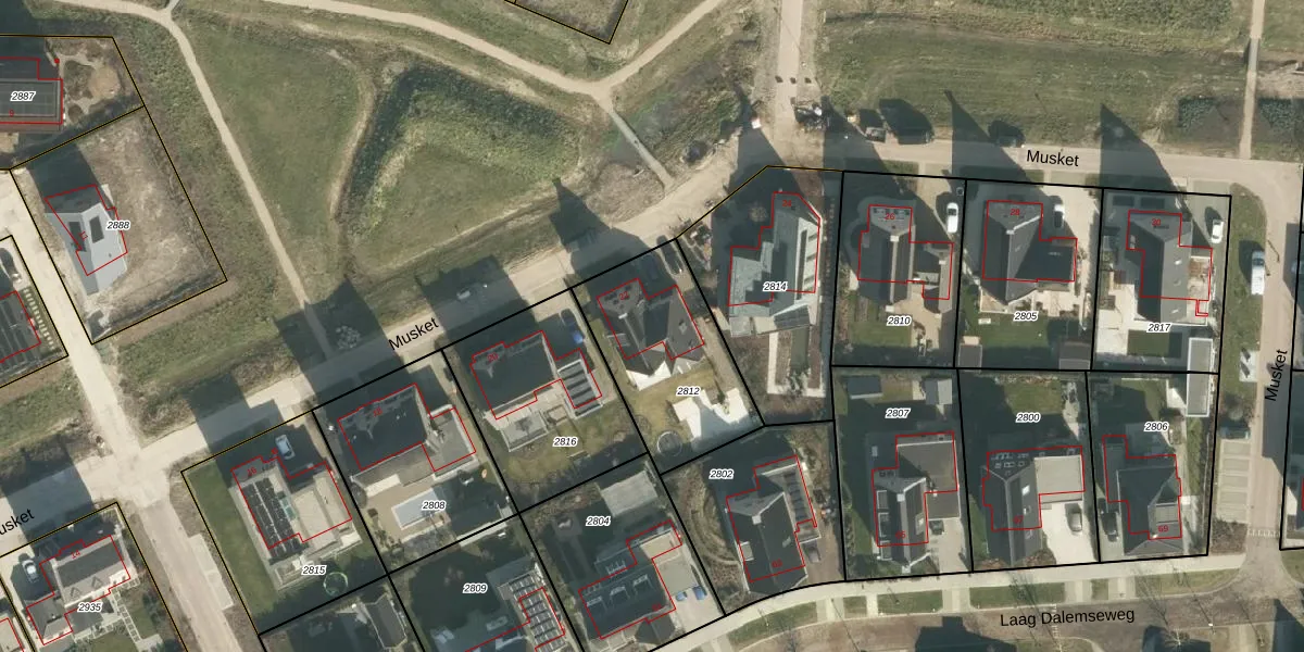 Het perceel waarop Musket 22 staat heeft een oppervlakte van 567 m². Dit is een groot perceel. De perceeloppervlakte wordt geregistreerd door het Kadaster. Gedetailleerde informatie over de maten van dit perceel kunt u vinden in het rapport Kadastrale kaart met maatvoering van Musket 22.