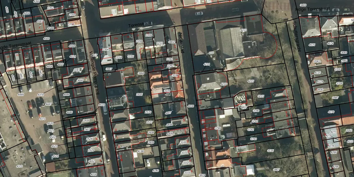Het perceel waarop Nieuwstad 14 staat heeft een oppervlakte van 265 m². Dit is een middelgroot perceel. De perceeloppervlakte wordt geregistreerd door het Kadaster. Gedetailleerde informatie over de maten van dit perceel kunt u vinden in het rapport Kadastrale kaart met maatvoering van Nieuwstad 14.