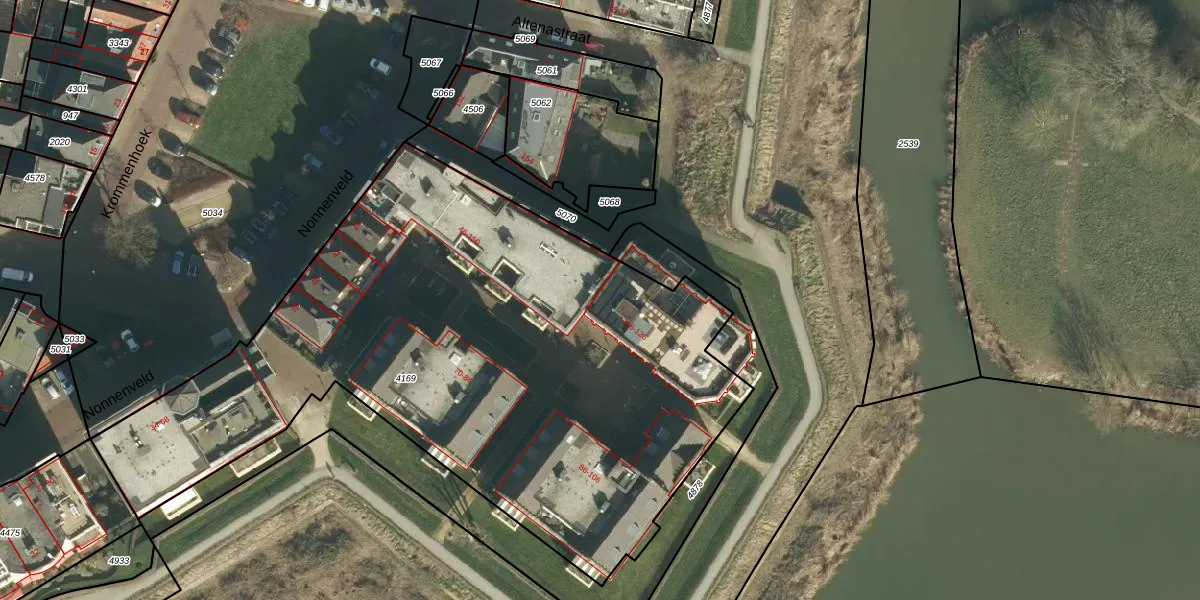 Het perceel waarop Nonnenveld 110 staat heeft een oppervlakte van 3694 m². Dit is een zeer groot perceel. De perceeloppervlakte wordt geregistreerd door het Kadaster. Gedetailleerde informatie over de maten van dit perceel kunt u vinden in het rapport Kadastrale kaart met maatvoering van Nonnenveld 110.