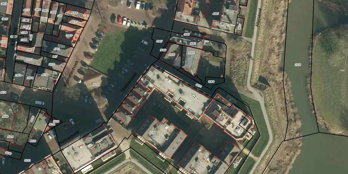 Het perceel waarop Nonnenveld 142 staat heeft een oppervlakte van 3694 m². Dit is een zeer groot perceel. De perceeloppervlakte wordt geregistreerd door het Kadaster. Gedetailleerde informatie over de maten van dit perceel kunt u vinden in het rapport Kadastrale kaart met maatvoering van Nonnenveld 142.