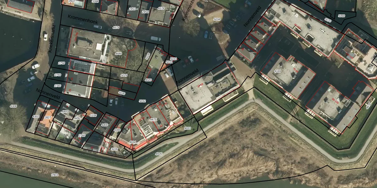 Het perceel waarop Nonnenveld 48 staat heeft een oppervlakte van 3694 m². Dit is een zeer groot perceel. De perceeloppervlakte wordt geregistreerd door het Kadaster. Gedetailleerde informatie over de maten van dit perceel kunt u vinden in het rapport Kadastrale kaart met maatvoering van Nonnenveld 48.