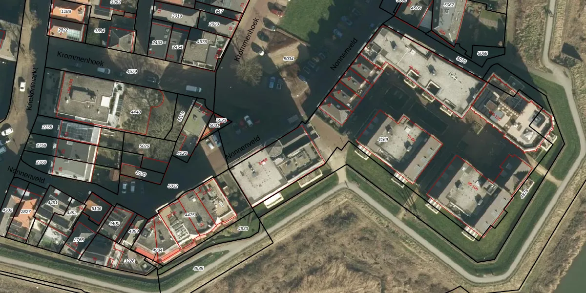 Het perceel waarop Nonnenveld 58 staat heeft een oppervlakte van 3694 m². Dit is een zeer groot perceel. De perceeloppervlakte wordt geregistreerd door het Kadaster. Gedetailleerde informatie over de maten van dit perceel kunt u vinden in het rapport Kadastrale kaart met maatvoering van Nonnenveld 58.