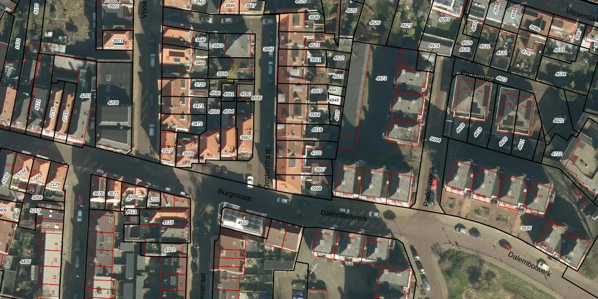 Gebruik de zoekbalk of klik op een perceel voor informatie over de adressen binnen dit perceel.