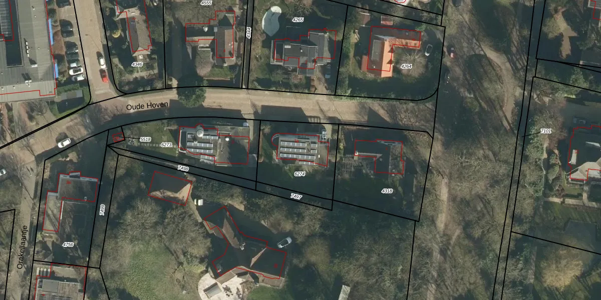 Het perceel waarop Oude Hoven 1-a staat heeft een oppervlakte van 598 m². Dit is een groot perceel. De perceeloppervlakte wordt geregistreerd door het Kadaster. Gedetailleerde informatie over de maten van dit perceel kunt u vinden in het rapport Kadastrale kaart met maatvoering van Oude Hoven 1-a.