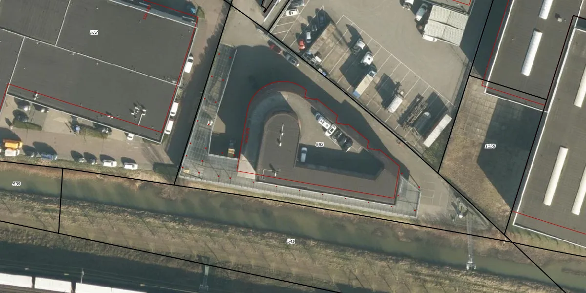 Het adres is gelegen op perceel 563 in de sectie H en de kadastrale gemeente Gorinchem. De kadastrale aanduiding is aldus GRC00-H-563. Het perceel is met 3889 m² relatief groot. Het gemiddelde ligt in de kadastrale gemeente Gorinchem op 1664,82 m². De grootste perceeloppervlakte in de kadastrale gemeente is 44,0 ha. De kleinste oppervlakte bedraagt 0 m². Op het perceel liggen in totaal 40 adressen. De huidige grenzen van het perceel zijn digitaal in de Basisregistratie Kadaster (BRK) geregistreerd op 16-01-2023.