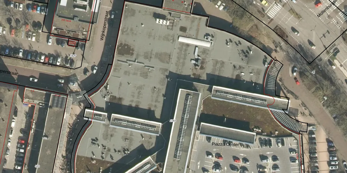 Het perceel waarop Piazza Center 15 staat heeft een oppervlakte van 1,4 ha. Dit is een zeer groot perceel. De perceeloppervlakte wordt geregistreerd door het Kadaster. Gedetailleerde informatie over de maten van dit perceel kunt u vinden in het rapport Kadastrale kaart met maatvoering van Piazza Center 15.