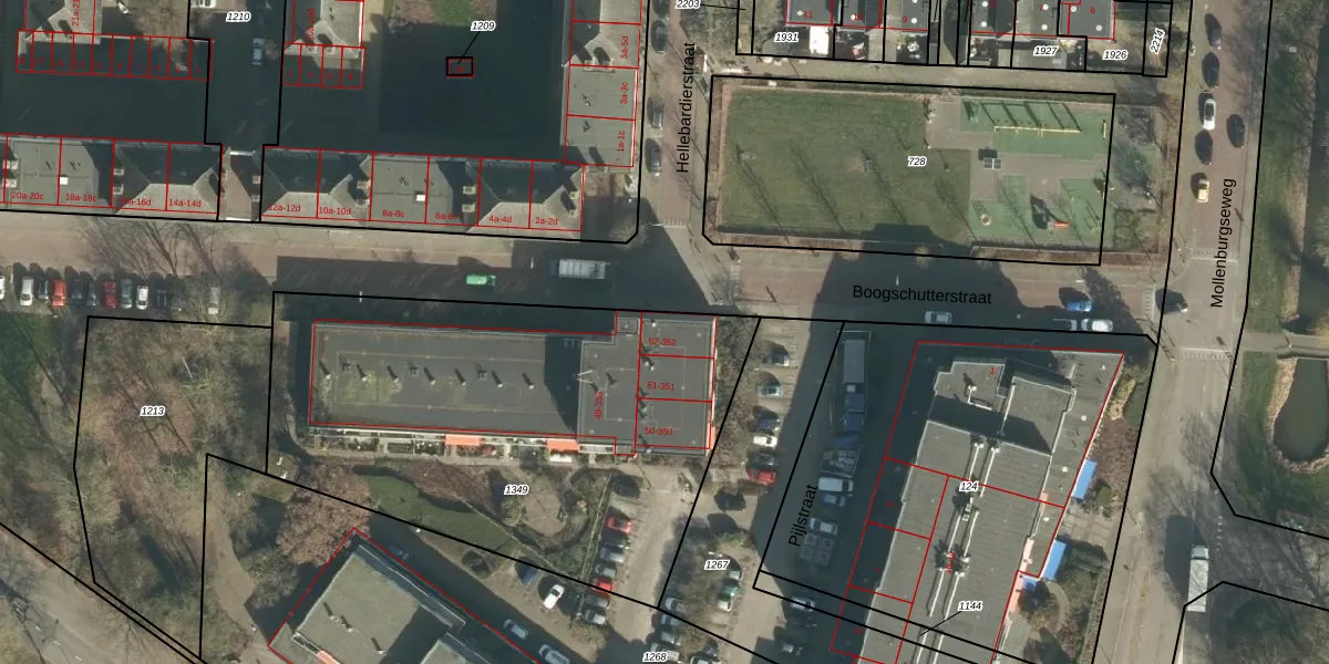 Het perceel waarop Pijlstraat 152 staat heeft een oppervlakte van 2460 m². Dit is een zeer groot perceel. De perceeloppervlakte wordt geregistreerd door het Kadaster. Gedetailleerde informatie over de maten van dit perceel kunt u vinden in het rapport Kadastrale kaart met maatvoering van Pijlstraat 152.