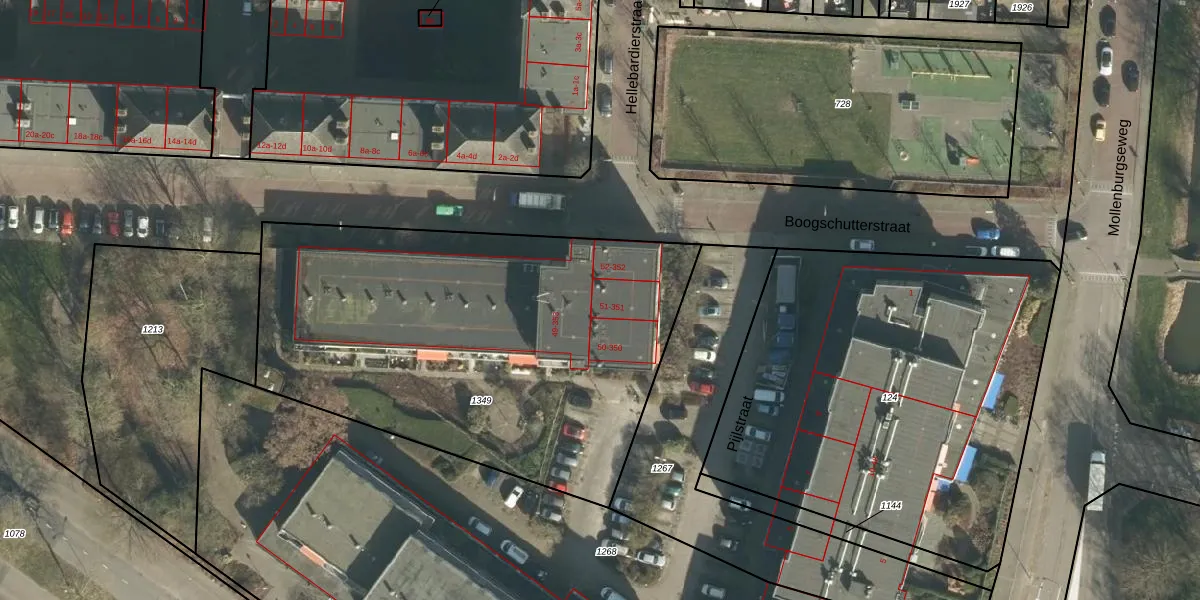 Het perceel waarop Pijlstraat 51 staat heeft een oppervlakte van 2460 m². Dit is een zeer groot perceel. De perceeloppervlakte wordt geregistreerd door het Kadaster. Gedetailleerde informatie over de maten van dit perceel kunt u vinden in het rapport Kadastrale kaart met maatvoering van Pijlstraat 51.