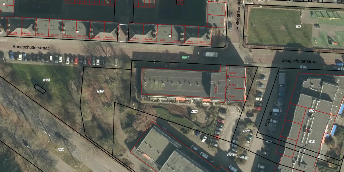 Het perceel waarop Pijlstraat 58 staat heeft een oppervlakte van 2460 m². Dit is een zeer groot perceel. De perceeloppervlakte wordt geregistreerd door het Kadaster. Gedetailleerde informatie over de maten van dit perceel kunt u vinden in het rapport Kadastrale kaart met maatvoering van Pijlstraat 58.