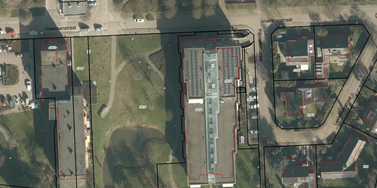 Het perceel waarop Pijpmakerstraat 20 staat heeft een oppervlakte van 3022 m². Dit is een zeer groot perceel. De perceeloppervlakte wordt geregistreerd door het Kadaster. Gedetailleerde informatie over de maten van dit perceel kunt u vinden in het rapport Kadastrale kaart met maatvoering van Pijpmakerstraat 20.