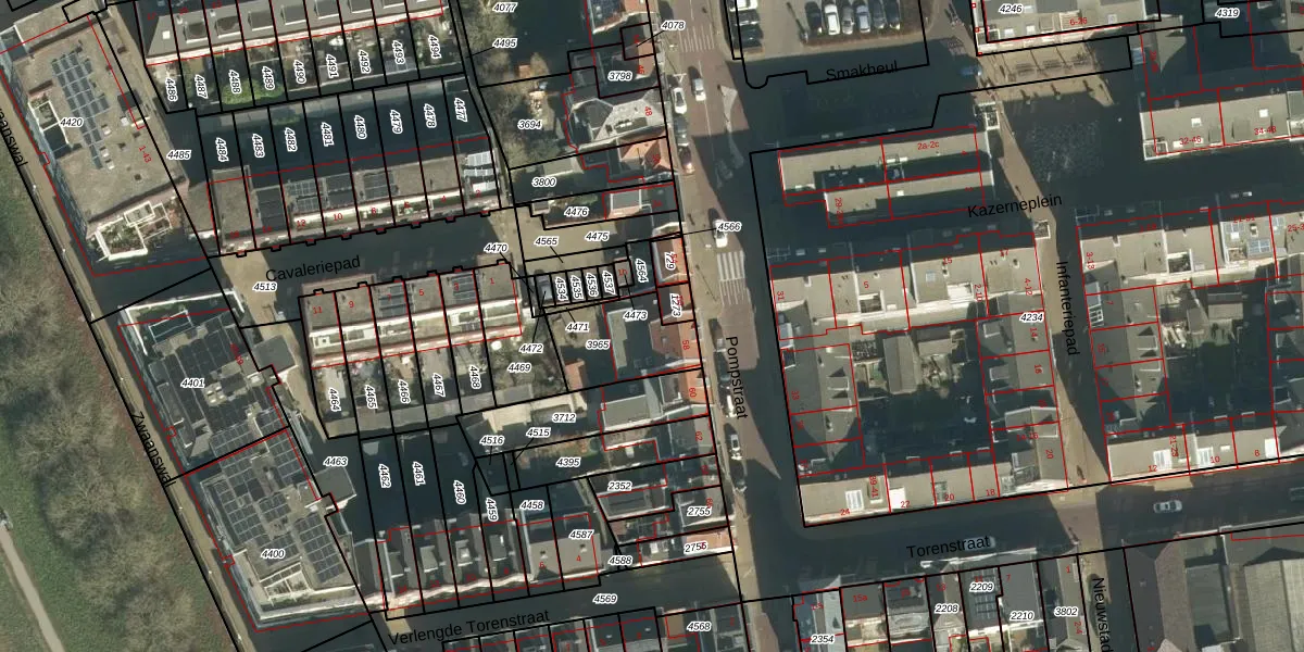 Gebruik de zoekbalk of klik op een perceel voor informatie over de adressen binnen dit perceel.