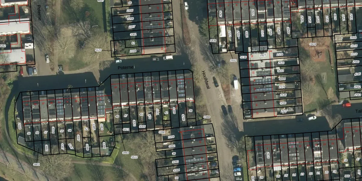 Het perceel waarop Poterne 3 staat heeft een oppervlakte van 141 m². Dit is een middelgroot perceel. De perceeloppervlakte wordt geregistreerd door het Kadaster. Gedetailleerde informatie over de maten van dit perceel kunt u vinden in het rapport Kadastrale kaart met maatvoering van Poterne 3.